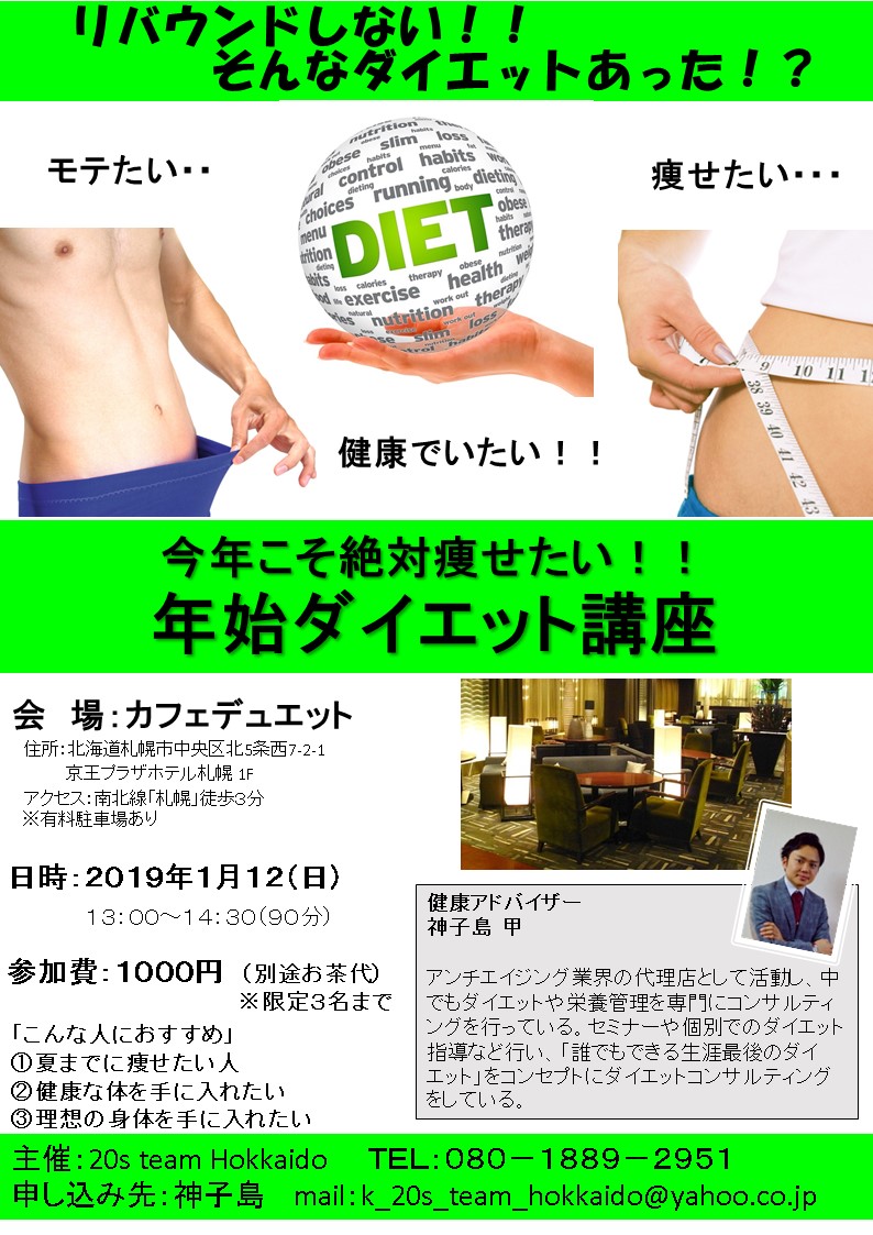 今回の講座は完全に個別で食事管理やサプリメントなどの方法をお伝えしたうえで、三ヶ月で食習慣の改善と体型を変化させるものですので、後日改めて日程を調整して、定期的に会をやっていこうと考えております。