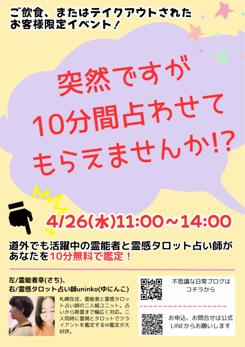 無料鑑定は11〜14時までの間で行います。