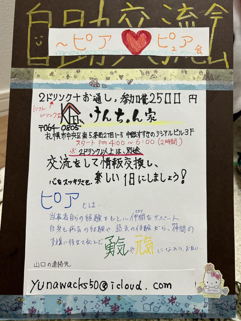 私自身、20歳から生きづらさがあり、居場所が欲しいということで、沢山のイベント参加してきましたが、しっくりこず…34歳自分で立ち上げてみよう!!という決意をし、第1回目のピア♡ピュア会を少人数(最大8名)で開催