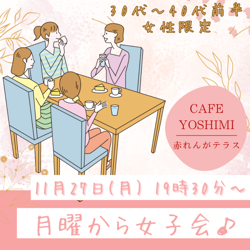 主に30代〜40代前半の女性を対象としてルール等を最低限にし、皆さんがのびのびとお話しできる環境づくりをしていこうと思っておりますのでぜひご参加ください。