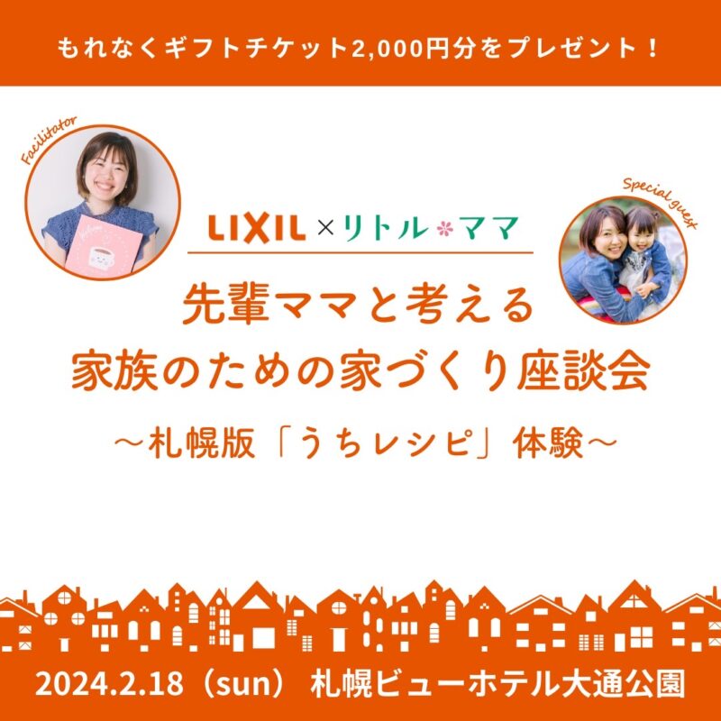 子育てメディア「リトル・ママ」とLIXILがコラボし、全国に先駆けて札幌のファミリー向けに、住宅購入検討中の方と住宅メーカーをマッチングするサービス「うちレシピ」の体験会を行います!