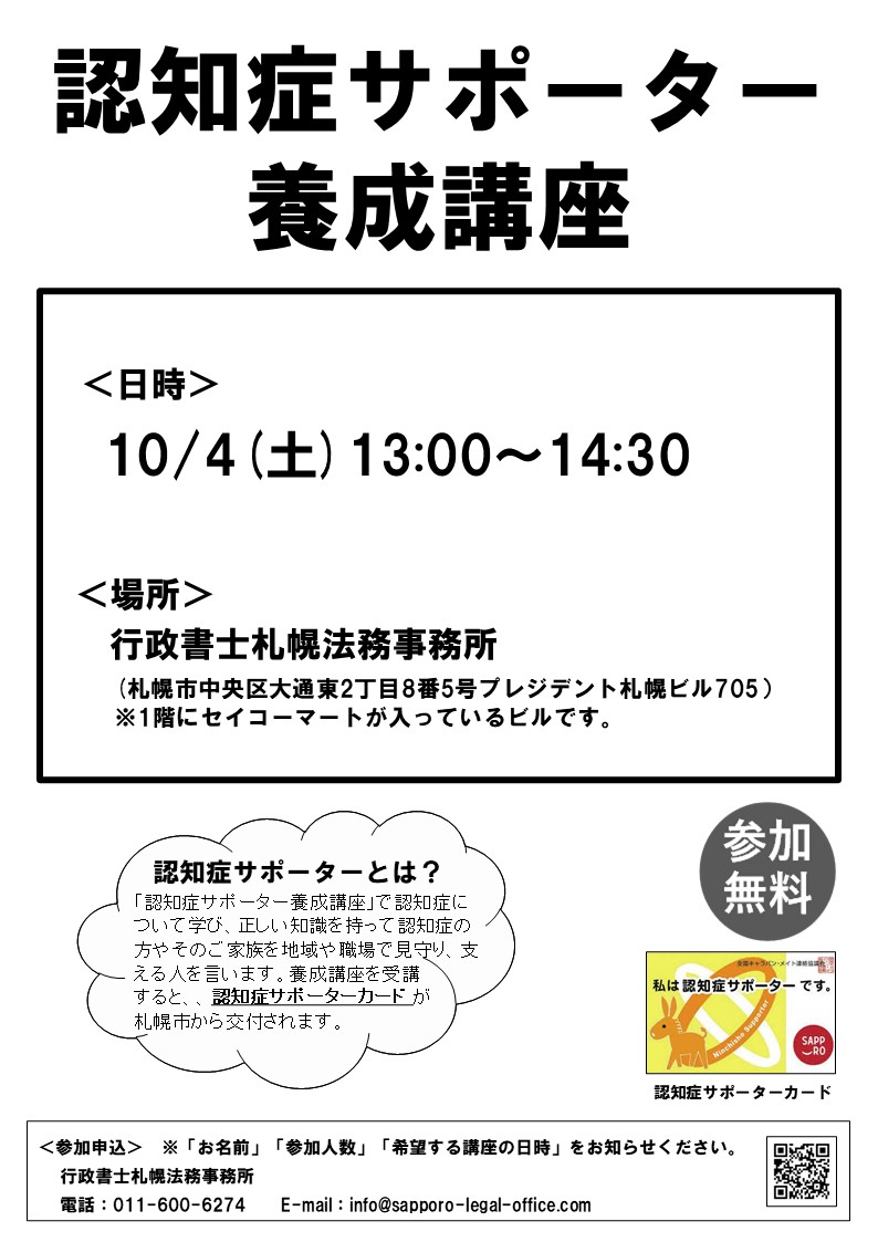 | 開催場所 | 行政書士札幌法務事務所 |