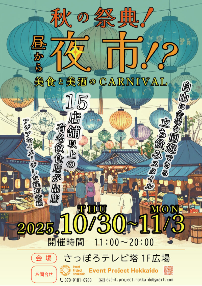 北海道の夜の食文化をさらに盛り上げるべく、さっぽろテレビ塔を起点とした特別な夜市イベントを開催します。