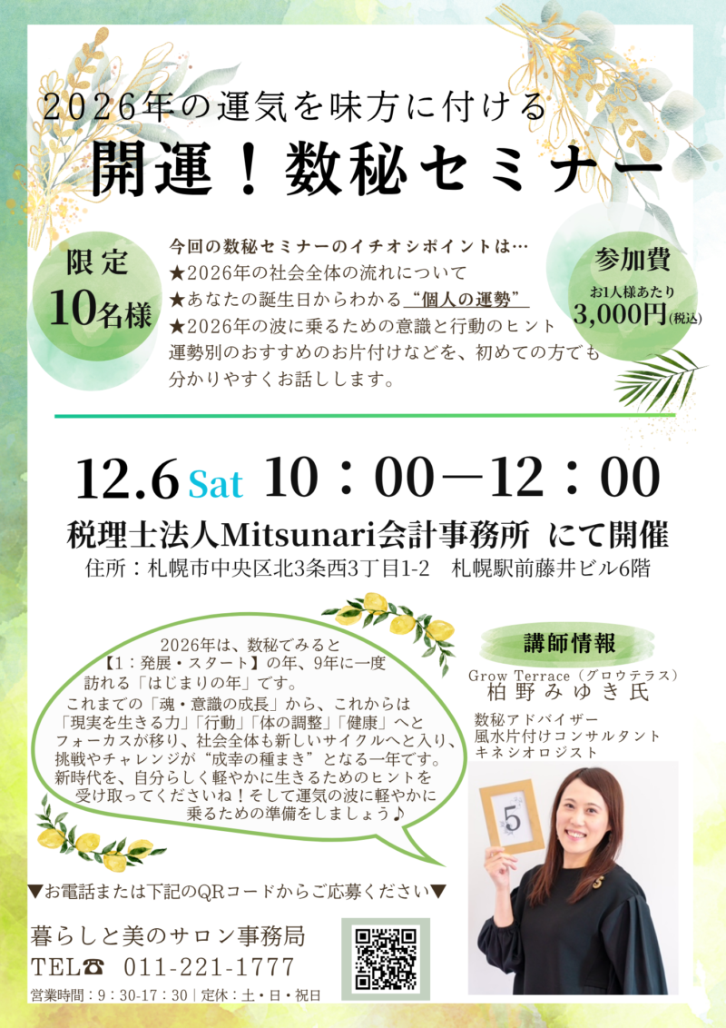 2026年の運気を味方に付ける 開運!数秘セミナー