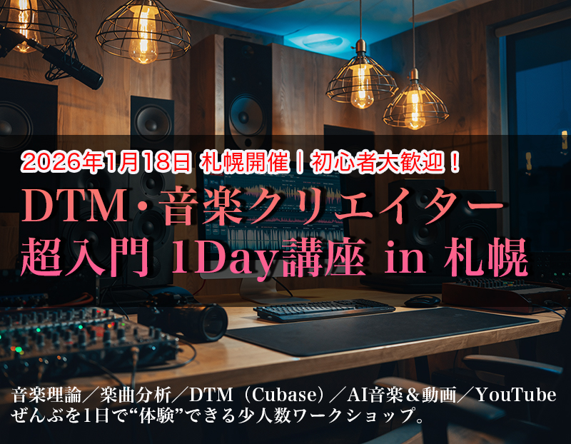 講師は、札幌の専門学校でDTM・音楽理論を教える現役クリエイター。