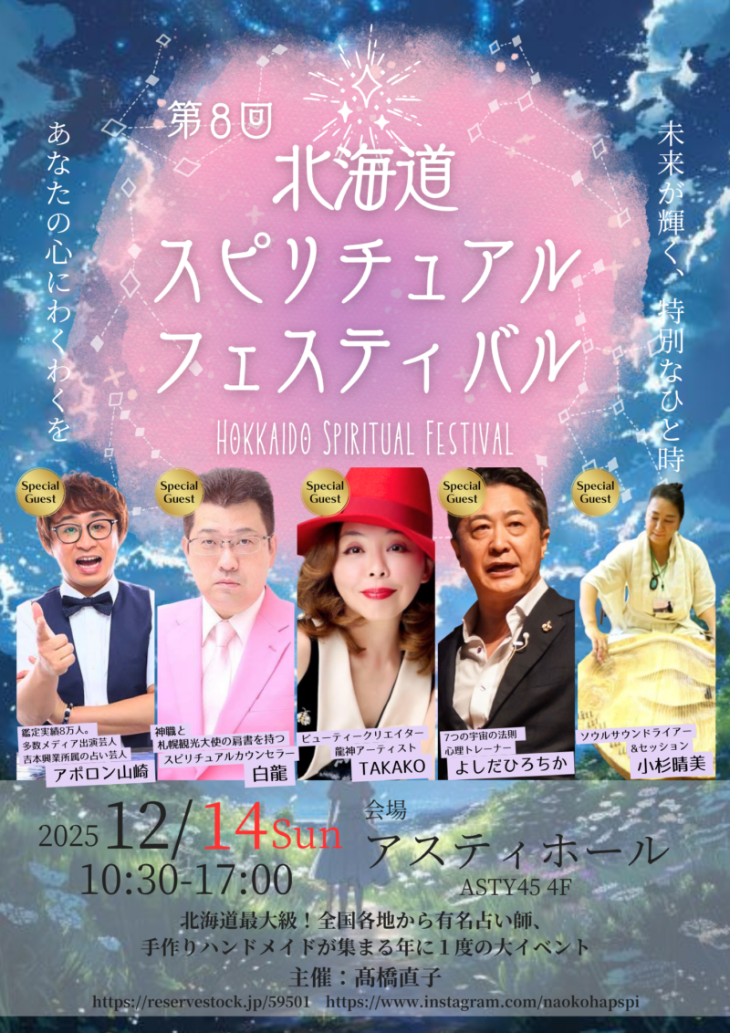 【入場無料】アポロン山崎&TAKAKO来場!癒し占い60ブース「北海道スピリチュアルフェスティバル」