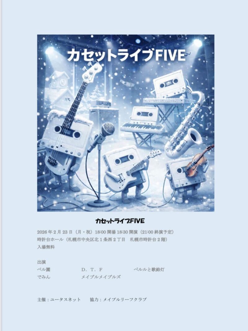 札幌在住ミュージシャンによる、多種多彩なジャンルで送るカセットライブ。