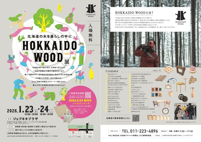 北海道の森で産まれ育ち、北海道で加工された「道産木材製品」の展示や販売を行います!