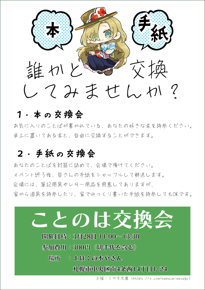第2回 ことのは交換会 ~本の交換会と手紙の交換会の同時開催!!~
