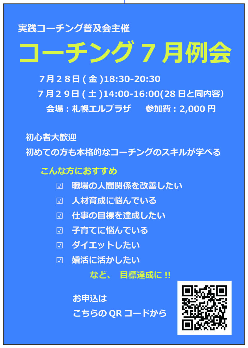 初心者、初参加者大歓迎コーチングスキル学習会です。