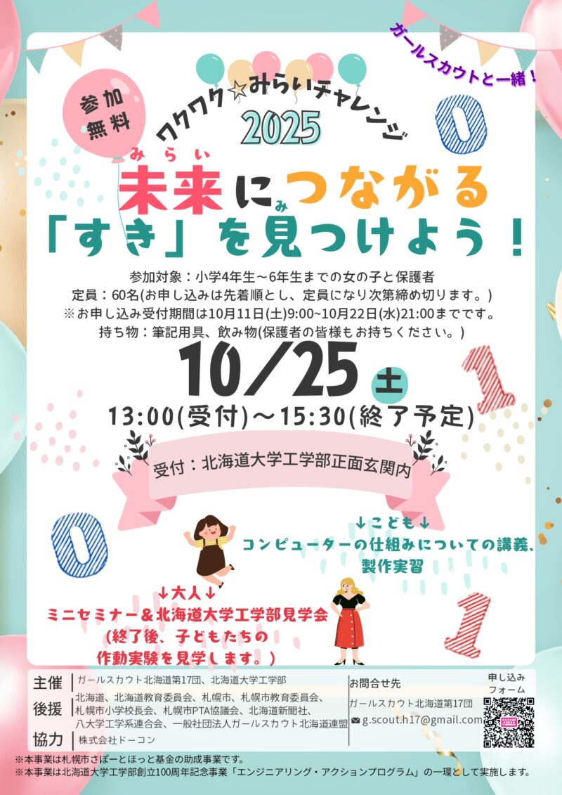 【参加対象】小学校4年生から6年生までの女の子と保護者さま