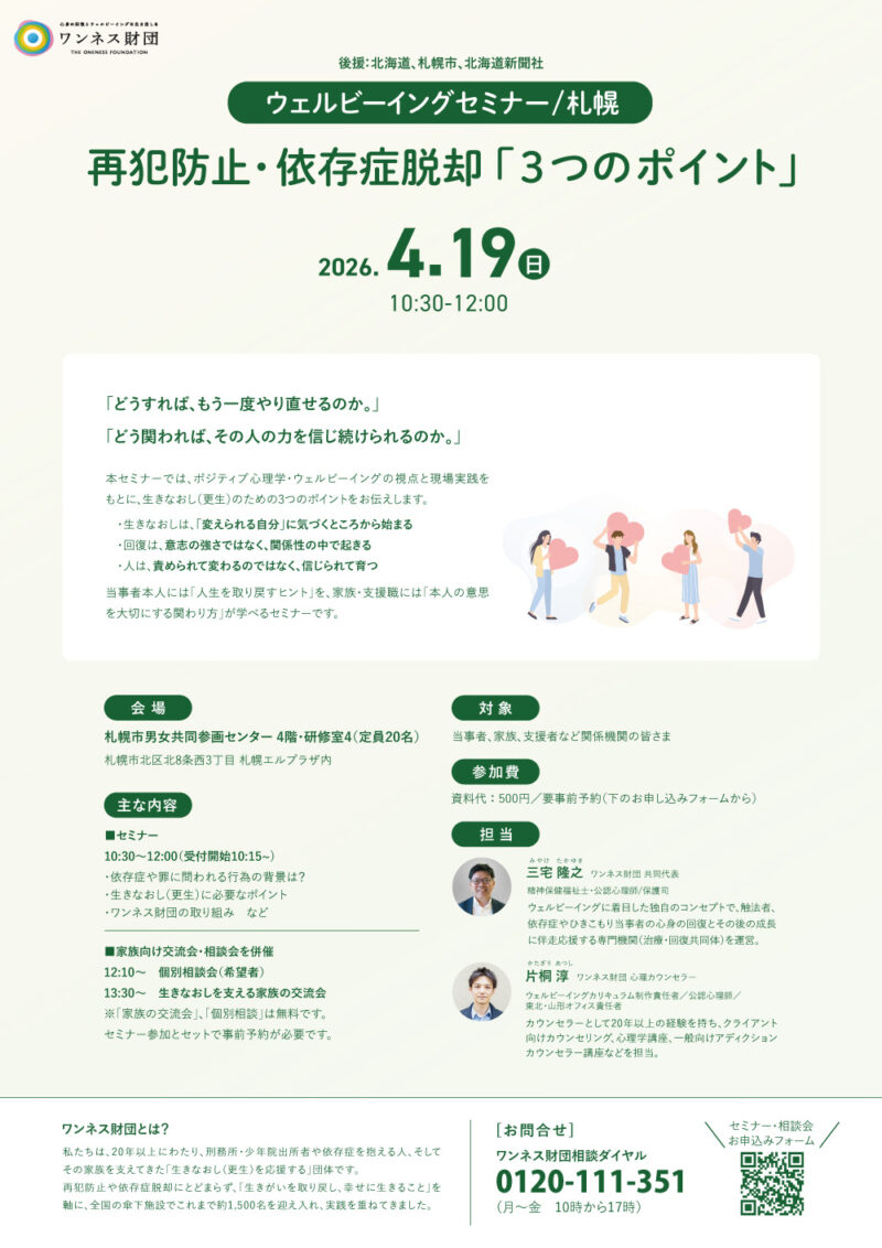 再犯防止や依存症脱却「3つのポイント」を知るセミナー