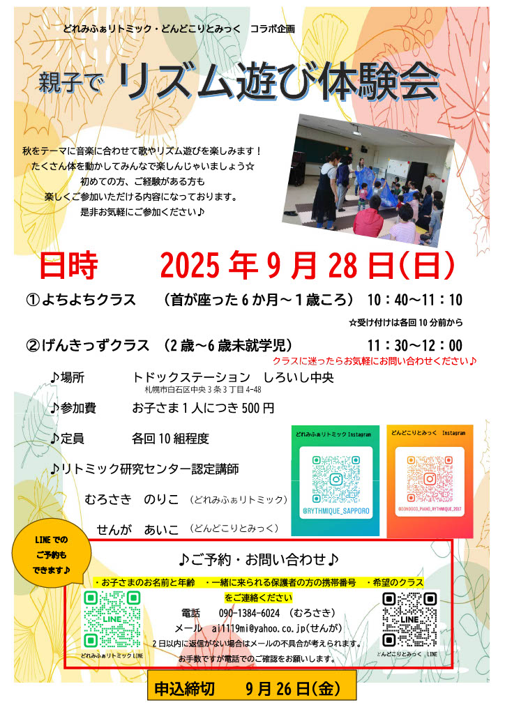 今回は秋をテーマにお友達や先生と、リズムの世界を楽しもう♪