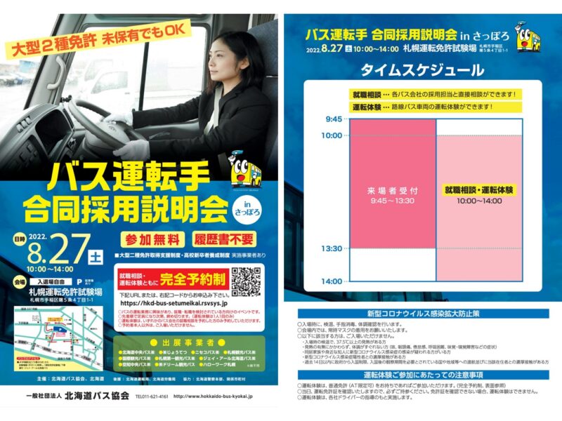 8月27日(土)に3年ぶりに「バス運転手合同採用説明会inさっぽろ」を開催いたします。