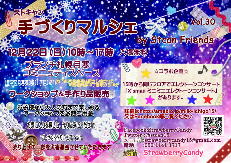 お子さまから大人の方まで楽しめるワークショップと手作り品の販売をします