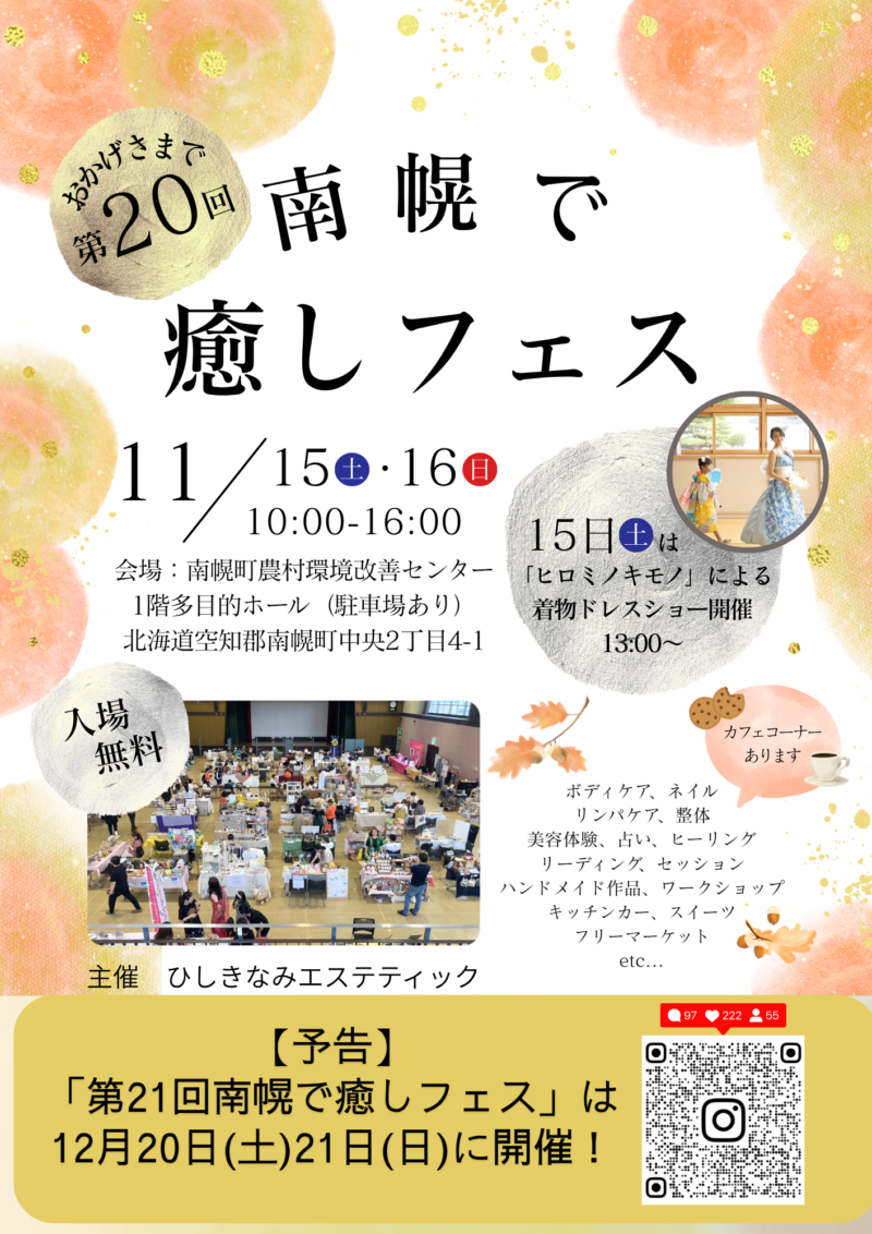 #第20回南幌で癒しフェス #南幌で癒しフェス #癒しイベント #マルシェ #北海道イベント #南幌町 #ハンドメイド #キッチンカー #占い #ヒーリング