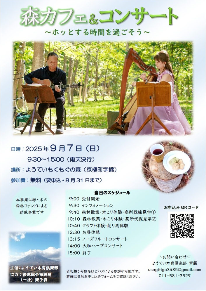 森の中を歩き、森の手入れも。お昼には森の恵みをいただきながら、森の中に流れる音を聴く。