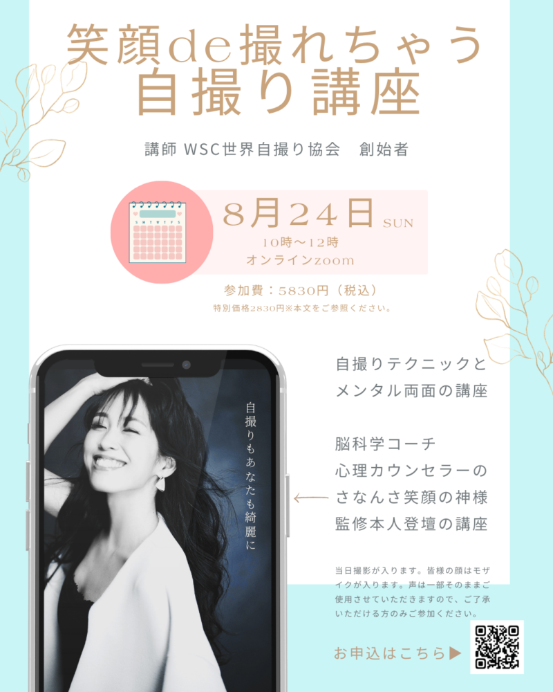 個人のSNSやWEBを利用し、笑顔de撮れちゃう自撮り講座の動画販売が始まったことを9月1日付近で投稿を2種ほどいただける方限定価格